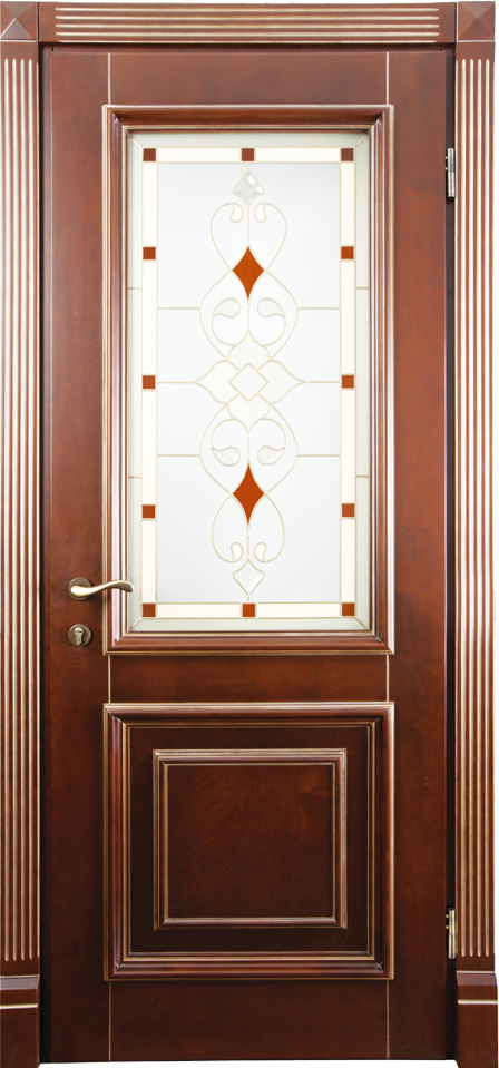 Для наших покупателей предлагается широкий выбор фурнитуры и возможности оформления. По желанию клиента изделие может быть дополнено стеклом и резьбой. Различные виды остекления позволяют придать всей конструкции двери оригинальности, а для тех клиентов, которые захотят придать дверям дополнительную роскошь, мы предлагаем покрытие дверного полотна патиной или тонким слоем сусального золота.
