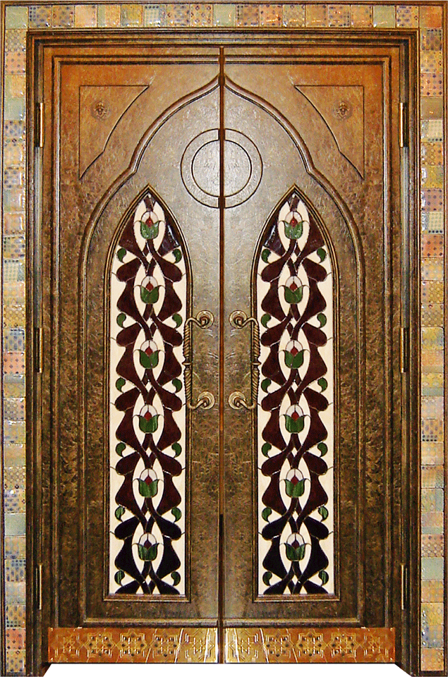 - Декоративные элементы дверных полотен, капителей, наличников, карнизов. Художественные стекла, патирование.